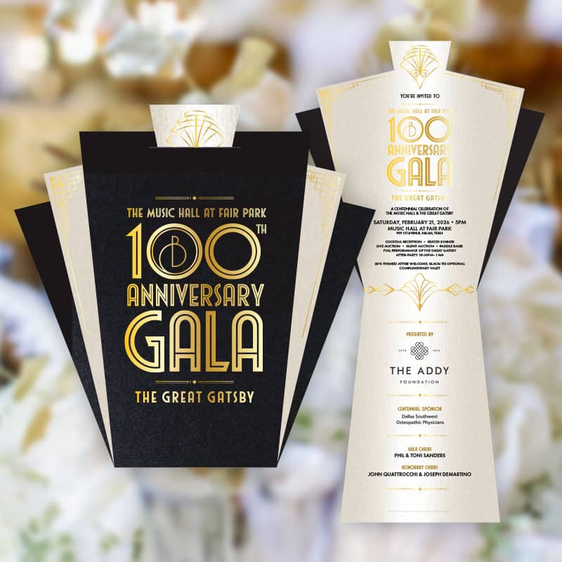 The 2026 Gala marked a special milestone: the 100th anniversary of the Music Hall at Fair Park, paired with a full Broadway performance of The Great Gatsby. Guests were transported into the glamour and spectacle of the Roaring Twenties through an evening of cocktails, dining, and world-class live theatre.